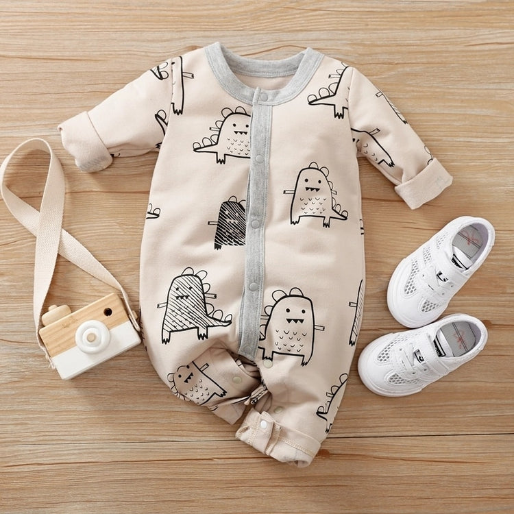 Fashion Top Brand Cartoon Print Cotton Top&Pants' Set - Peach, Grey