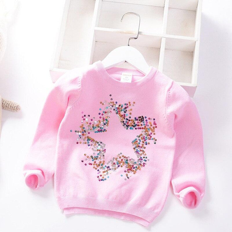 Fashion Soft Cotton Knitted Sequin Adorable Sweater - Pink Unicorn
