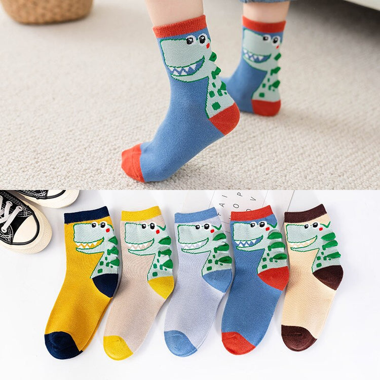 5 Pairs of Comfortable Mid-Length Anime Cartoon Socks for Boys - Multicoloured