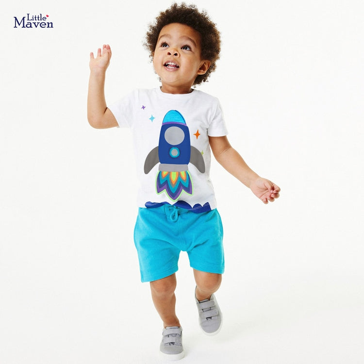 Boys' Cotton Sports Set (2–7 Yrs) with Space Print – Black