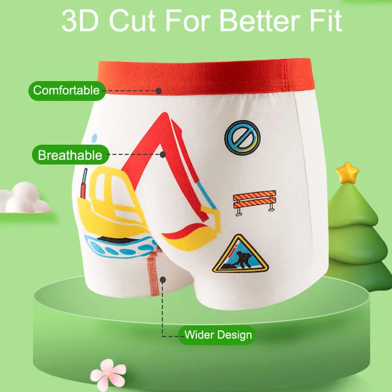 Сotton Breathable Boxer Shorts for Boys, 4 Pcs - Green, Grey, Blue, Yellow, White, Navy, Multicoloured