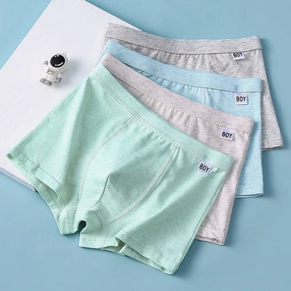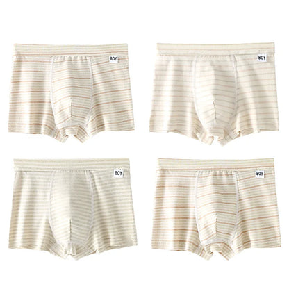 4pcs Boys’ Antibacterial, Breathable & Soft Cotton Boxers - Grey, Blue, Green, Beige Striped