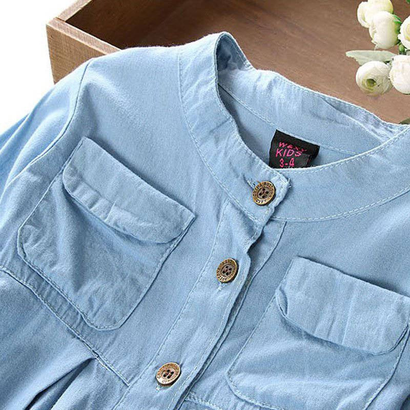 Girls Denim Long Sleeve Cotton Shirt - Blue
