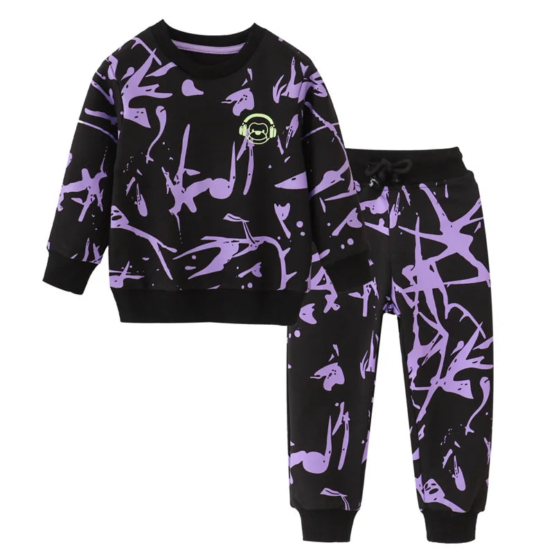 Warm Cotton Long Sleeve Animal Print Boys Clothing Sets - Black, Grey, Blue, Green