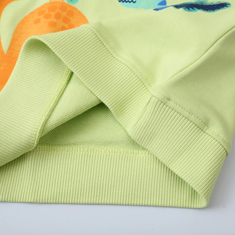 Cotton Long Sleeve Sweatshirt with Cartoon Dinosaurs for Boys & Girls - Green
