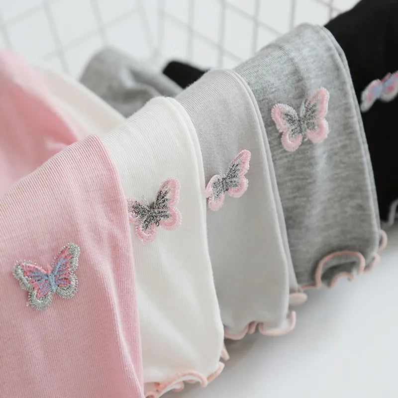 Give your girl the ultimate wardrobe staple with our Cotton Knee Length Leggings with Butterfly Application. Available in pink, grey, silver, black, and white, these leggings are perfect for any occasion. Made for girls aged 2-10 years, they provide comfort and style all season long.