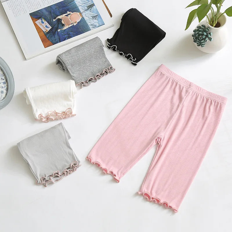 2-10 Years Summer Knee Length Leggings For Girls - Pink, Grey, Silver, Black, White