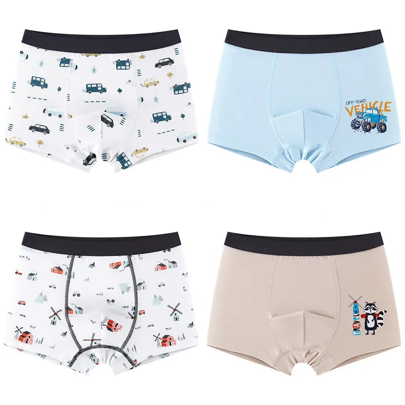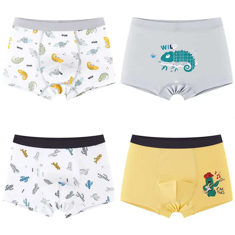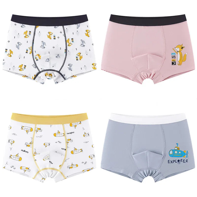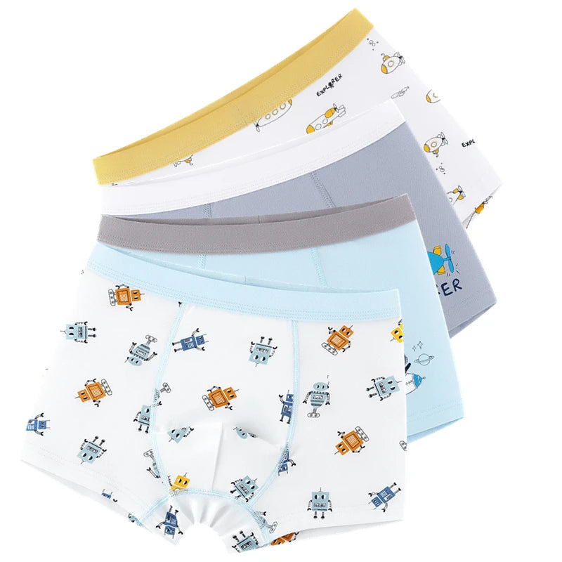 4 Pcs Stylish Elastic Boxer Briefs with Space Inspired Design - Yellow, Blue, Grey, Pink