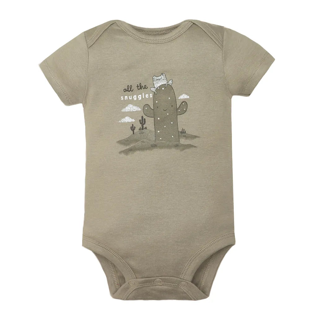 5-pack Newborn Baby Cartoon Printed Cotton Bodysuit - Beige, Black, Khaki