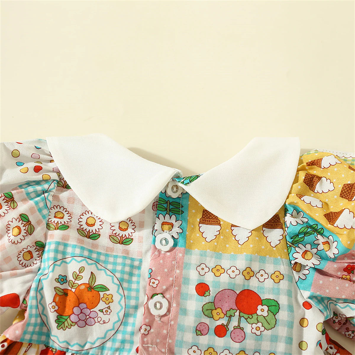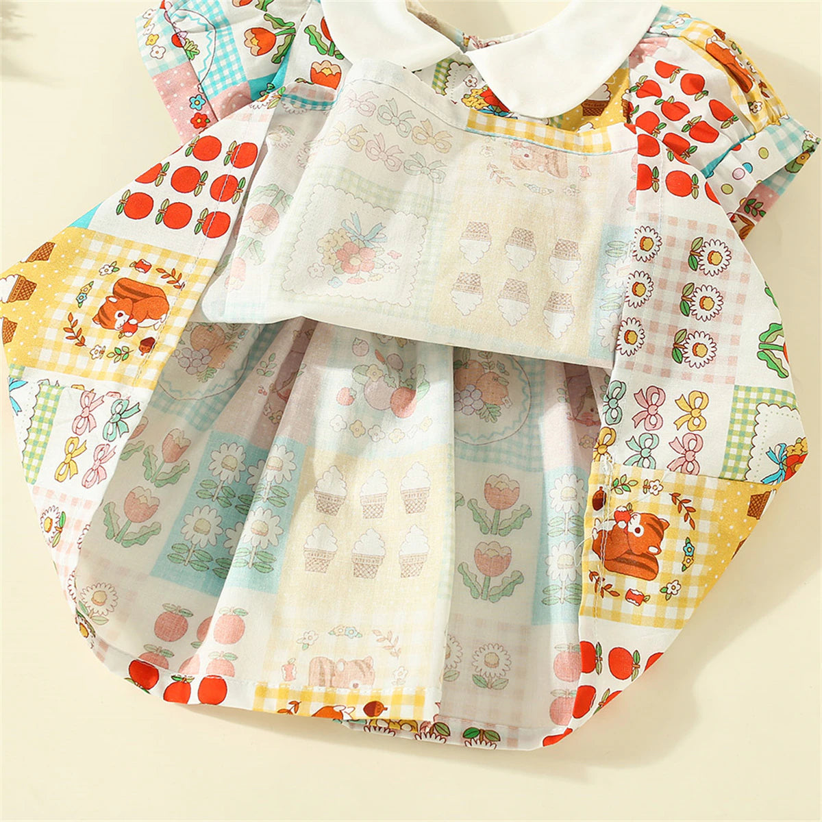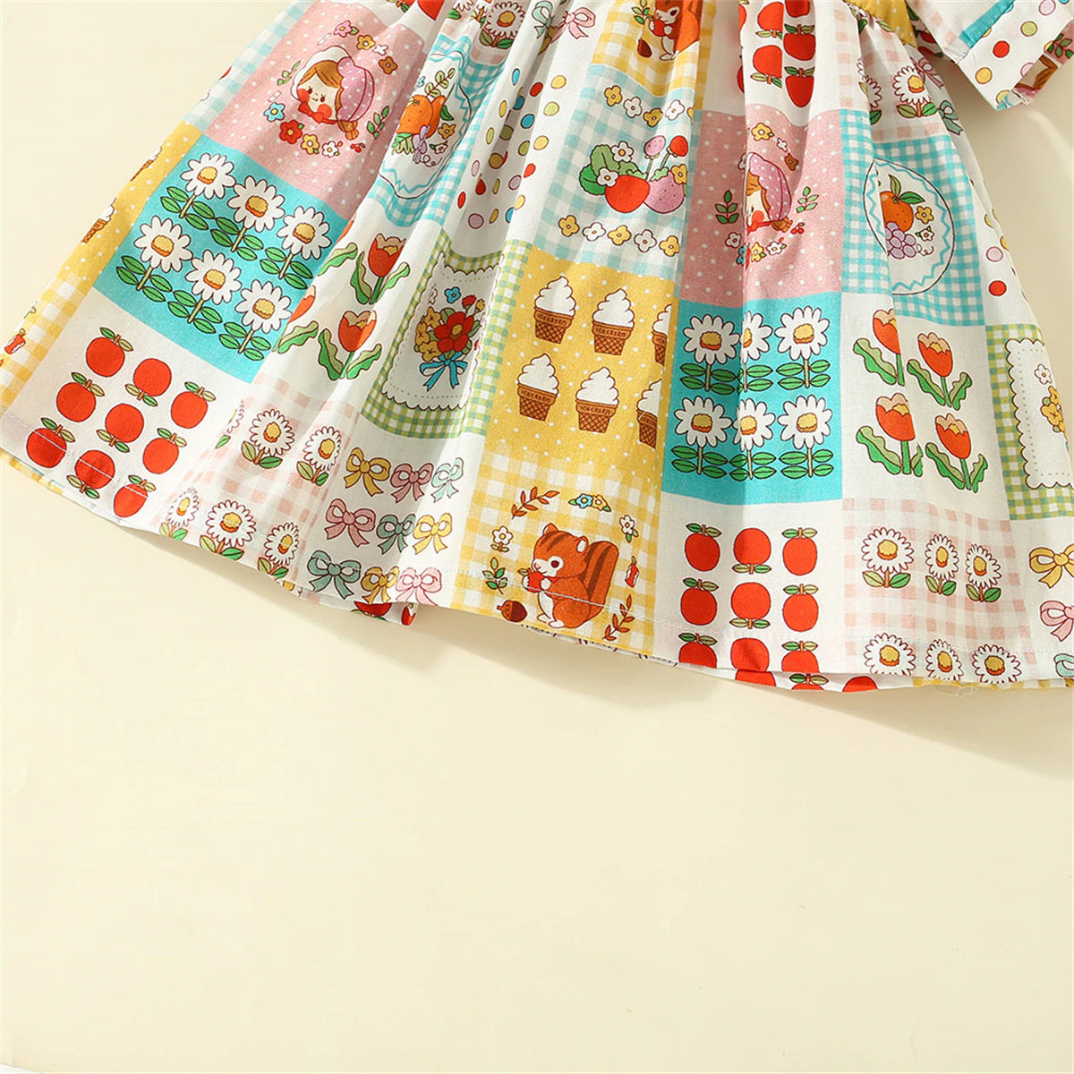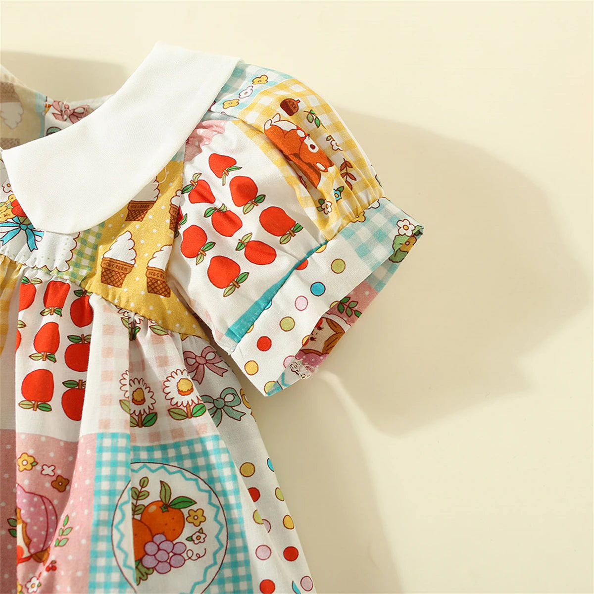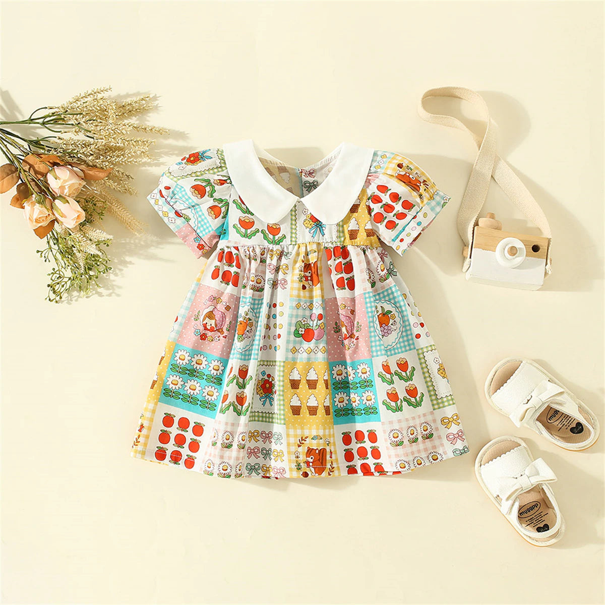 2025 Summer Cartoon Print Polo Neck Short Sleeve Daily Girls Dress - Multicoloured