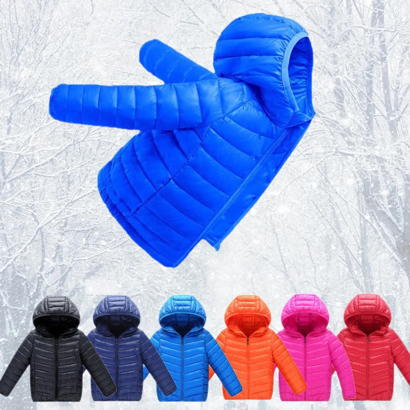 Keep your little ones cozy and stylish with our trendy, warm kids' down jackets. Designed for both boys and girls, these jackets feature a hood and zip for extra warmth and comfort. Perfect for any outdoor adventure or everyday wear, your kids will love these jackets and you'll love the peace of mind knowing they're cozy and trendy.