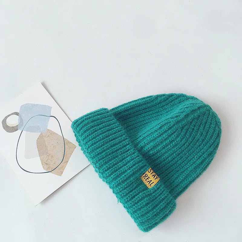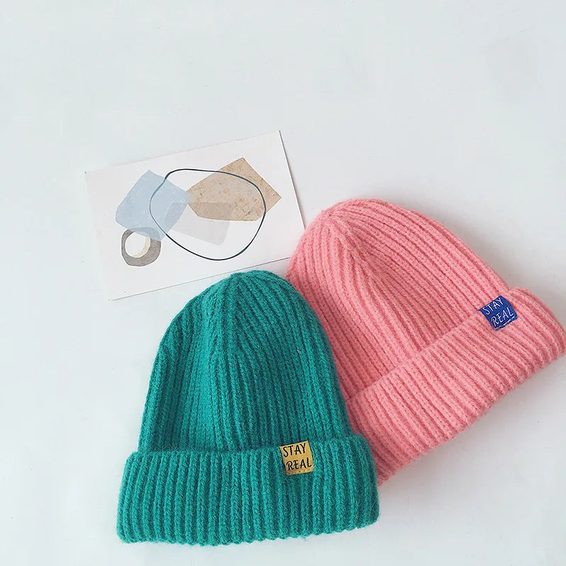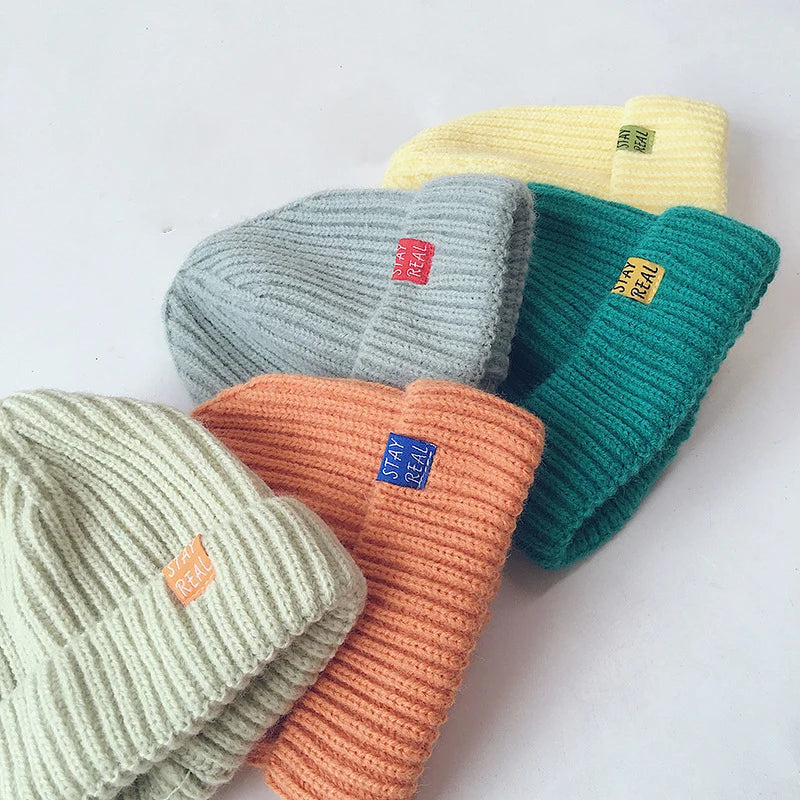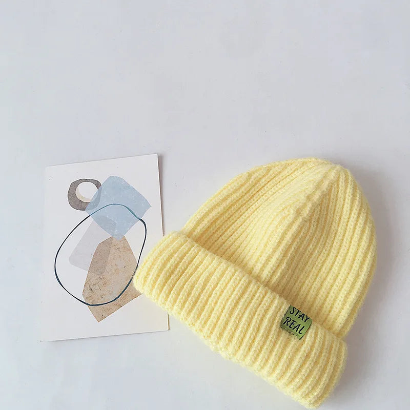 Solid Colour Warm Soft Knitted Hats - Yellow, Green, Pink, Grey, Orange