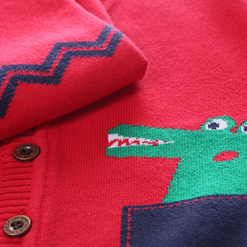 Boys Cartoon Crocodile Cotton Knit Cardigan - Red, Navy Blue, Light Grey, Citric Green, Yellow