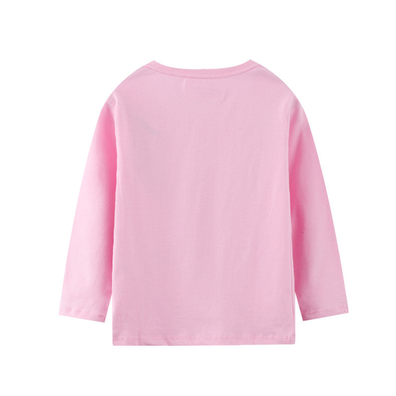 Girls Cute Bunny Print Long Sleeve Cotton Top - Pink