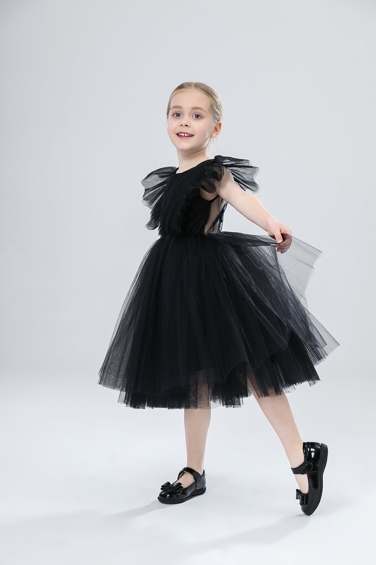 Girls Spanish Flower Boutique Tulle Dress - Black, Grey