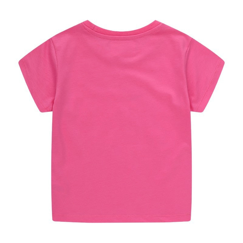 Girls Summer Short Sleeve Cotton T-shirt with Animals Embroidery - Fuchsia
