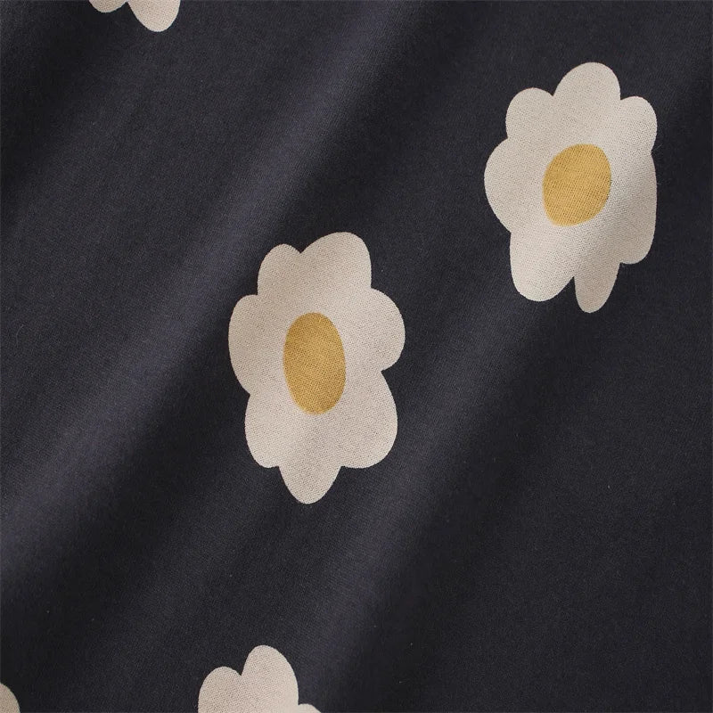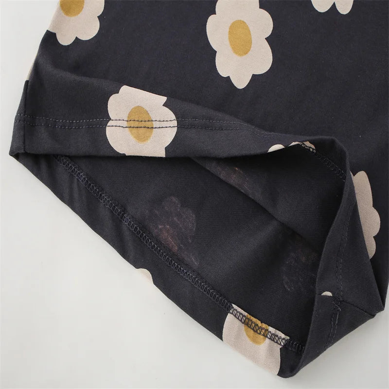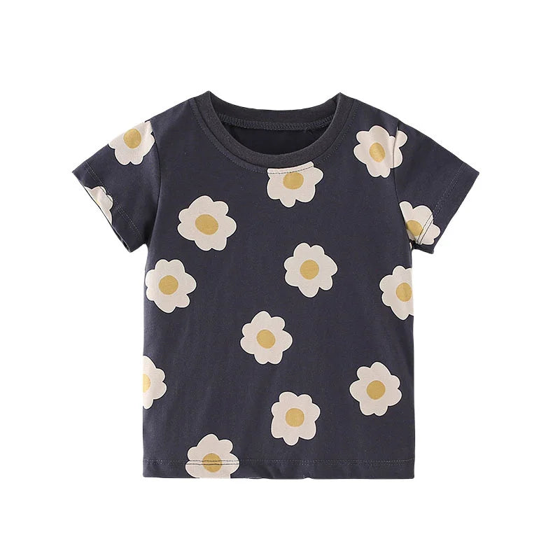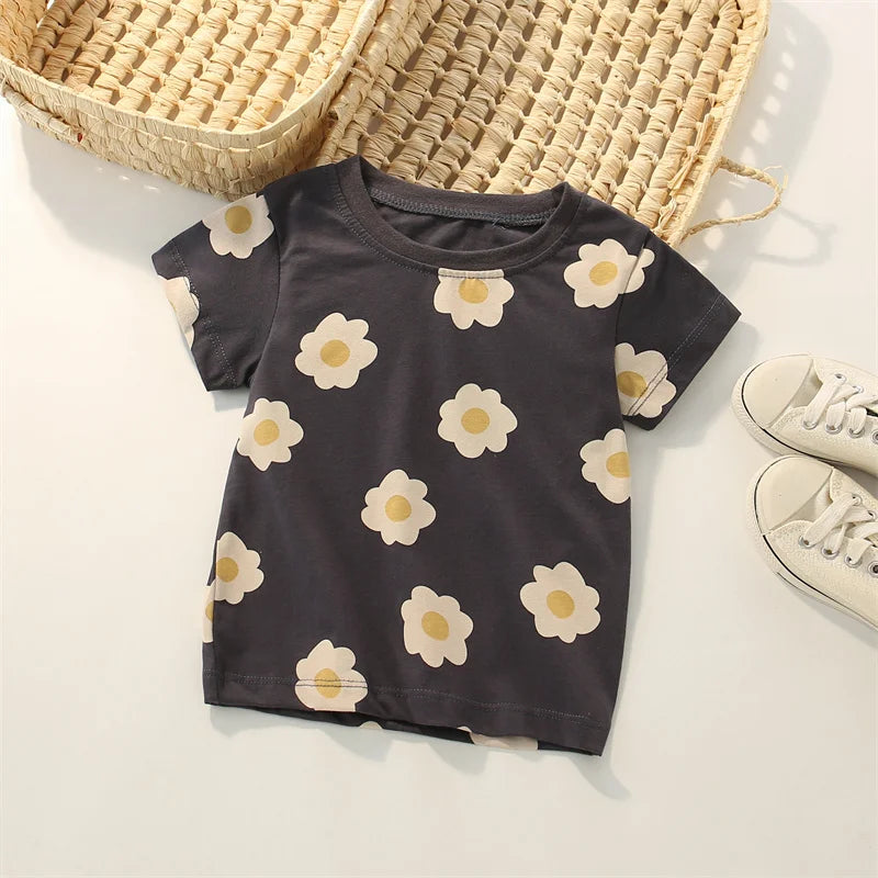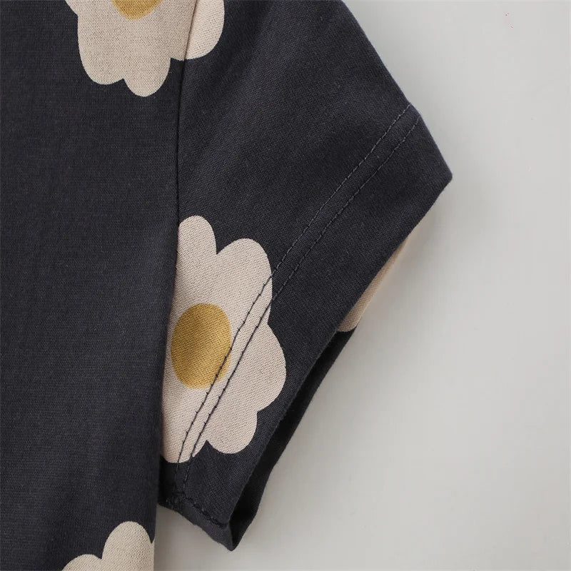 Girls Summer Cotton T-Shirts with Flowers - Black