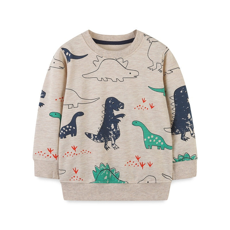 Children's Cartoon Animals Print Long Sleeve Cotton Sweatshirt - Red, Brown, Beige, Green