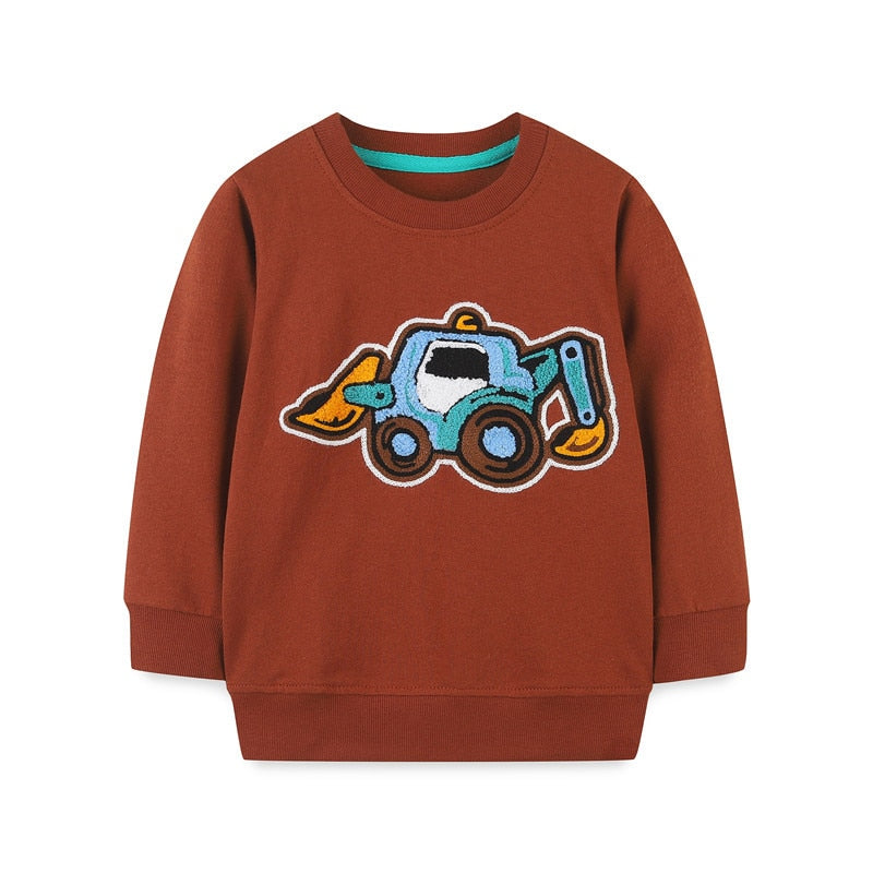 Children's Cartoon Animals Print Long Sleeve Cotton Sweatshirt - Grey, Red, Brown