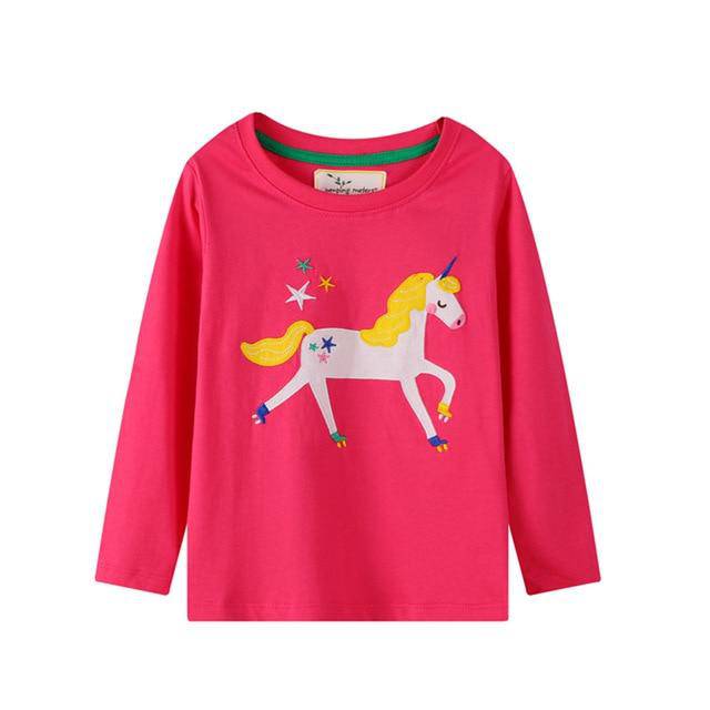 Unicorn Print Long Sleeve Cotton Top - Fuchsia