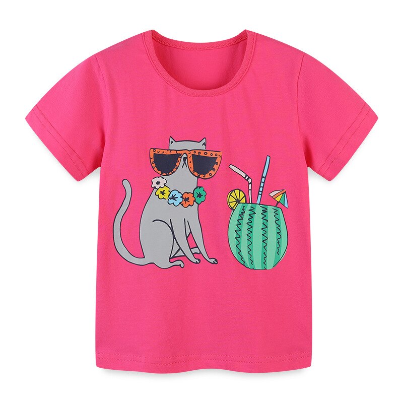 Cotton Cartoon Print Short-Sleeved T-Shirts for Kids - Pink, Red, Yellow, White