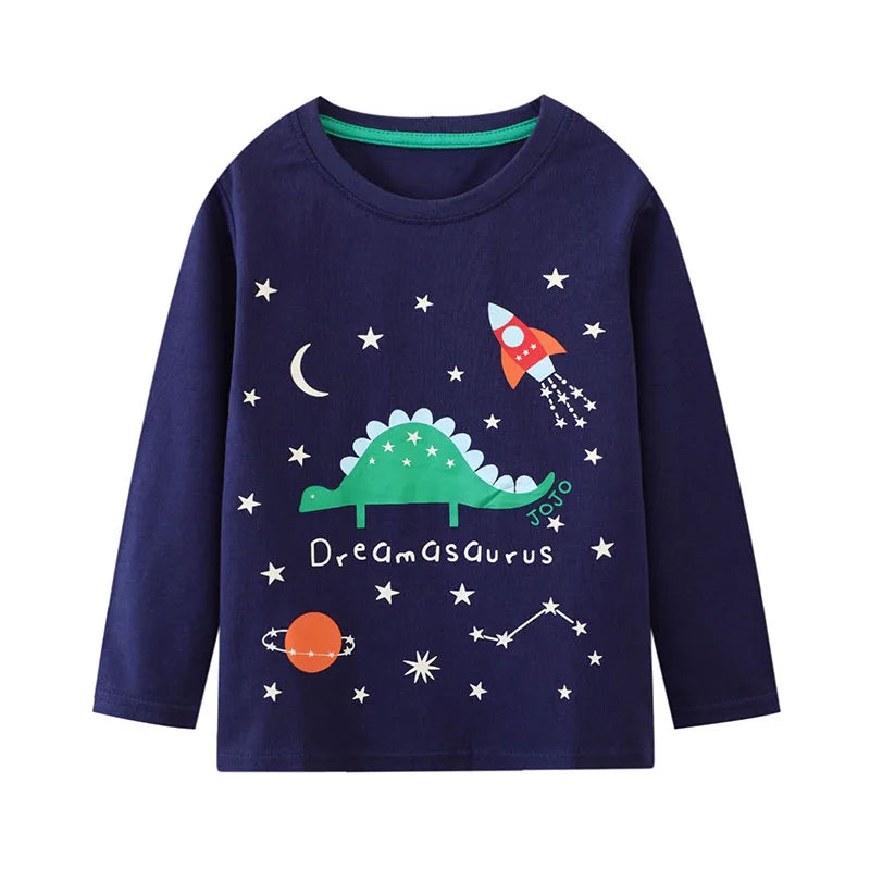 Cotton Long Sleeve Dino Light-Up T-Shirt for Boys – Navy Blue