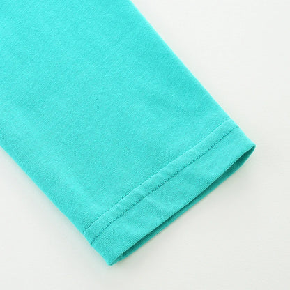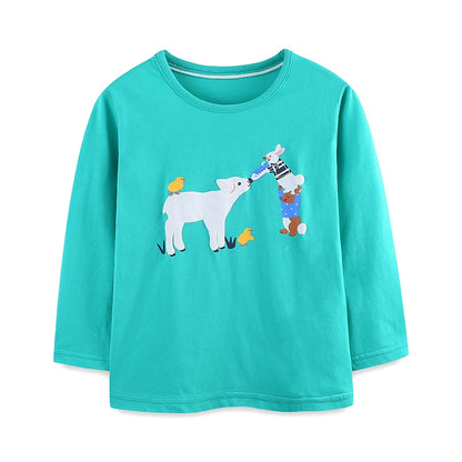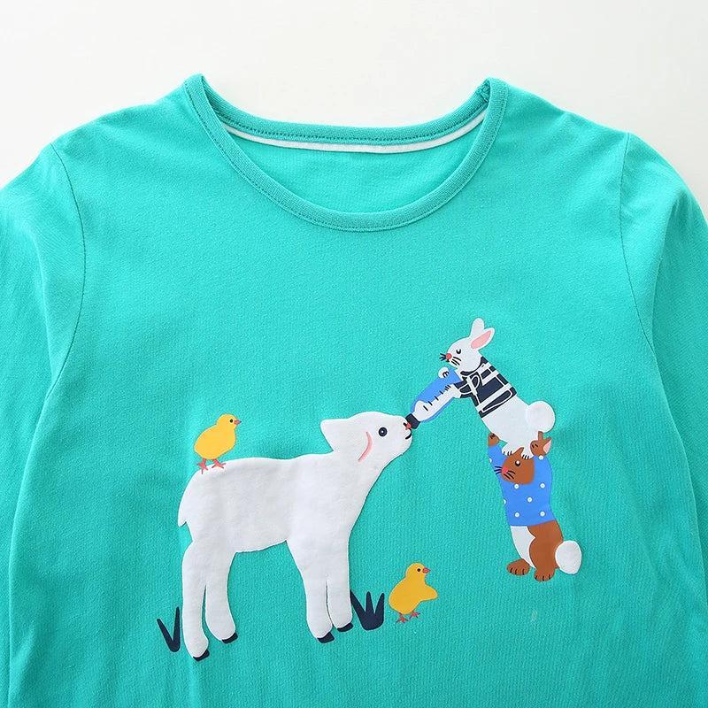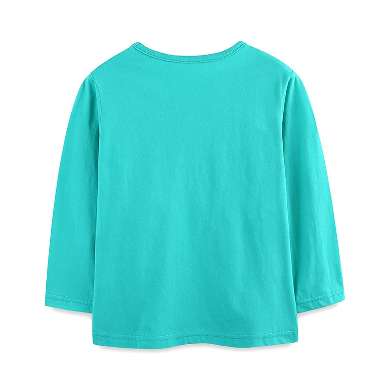 Cute Cotton Long Sleeve Cartoon Animal Print T-Shirt – Turquoise
