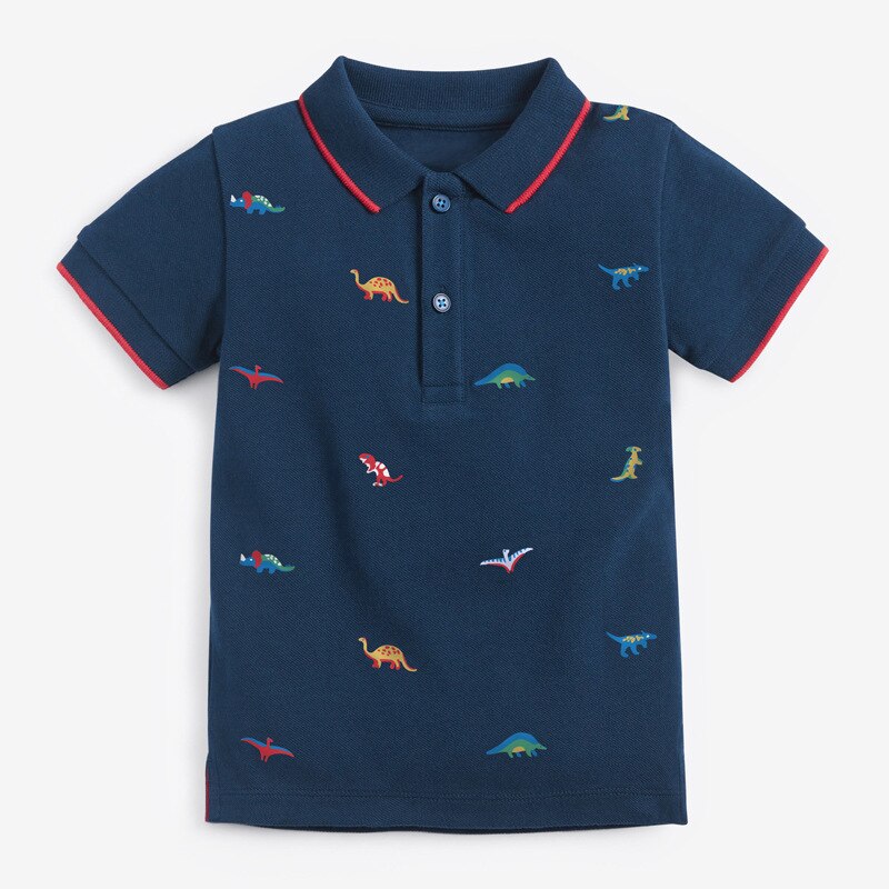 Soft Cotton Polo Shirt with Dinosaur Print - Navy