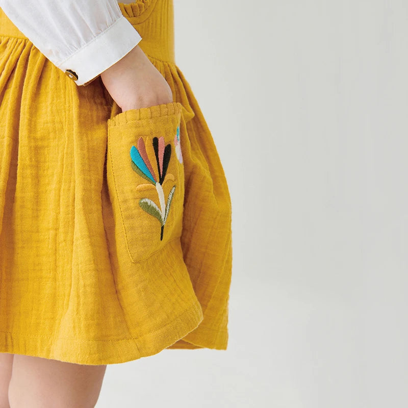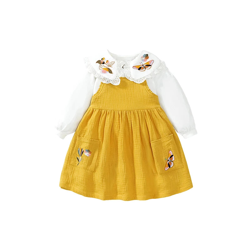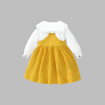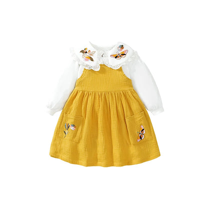 Cotton Set Shirt + Dress for Girls Long Sleeve Floral Print 2-7 Years - Yellow