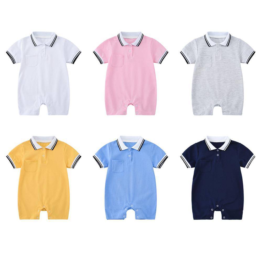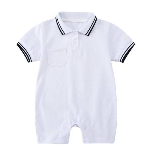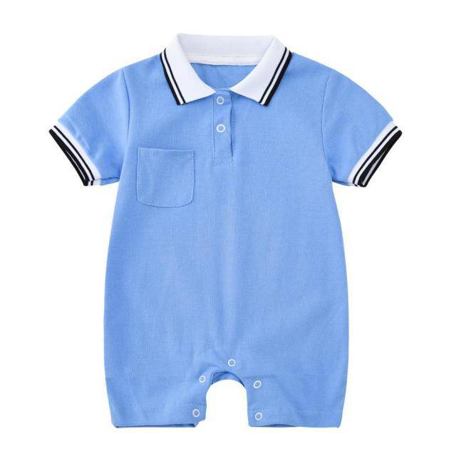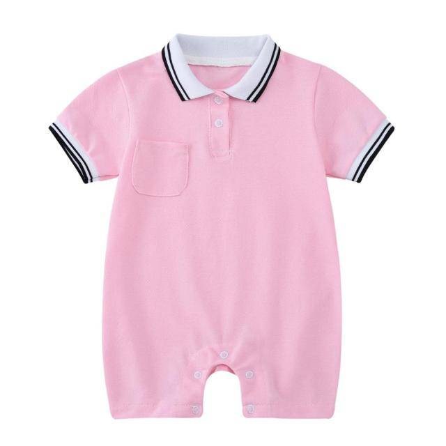 Baby Girls Boys Fashion Polo 100% Cotton Bodysuit - Blue, Pink, White, Dark Blue, Yellow, Grey