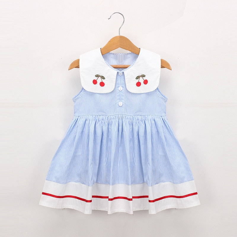 Summer Fancy Princess Dress Embroidered with Сherries - Sky Blue