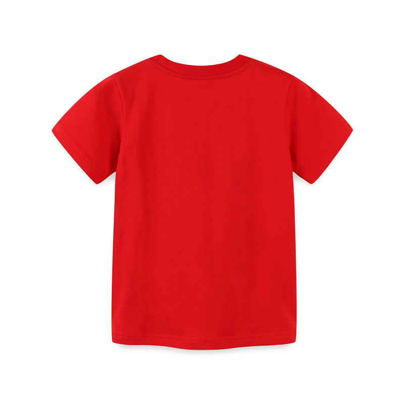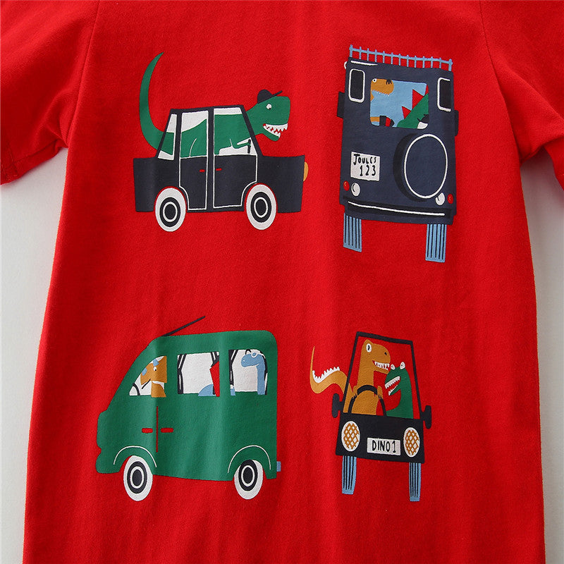 Boys Cartoon Cars Short Sleeve Cotton T-shirt - Red