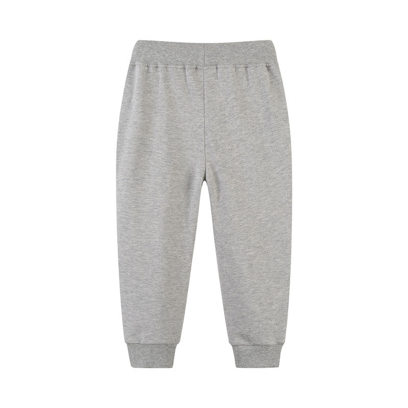 Girls Plain Colour Drawstring Cotton Sweatpants - Grey