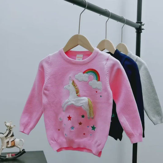 Fashion Soft Cotton Knitted Sequin Adorable Sweater - Pink Unicorn