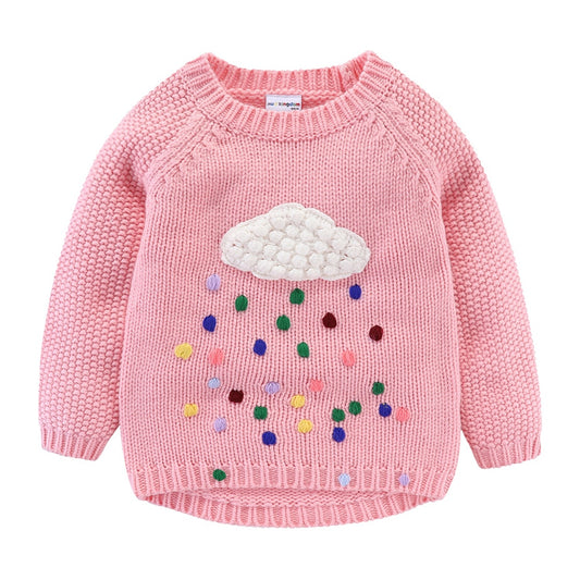 Children's Colourful Cloud and Rains Knitted Pullover - Pink, Red, Navy Blue, Grey