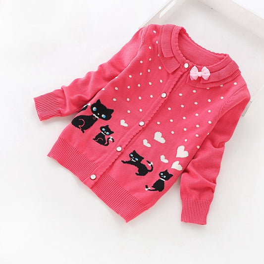 Girls Cartoon Embroidered Cat Knitted Vest - Pink, Red
