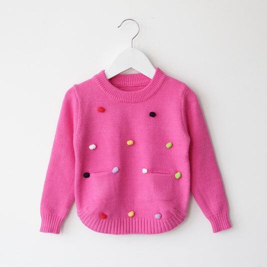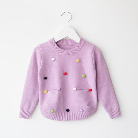 Girls' Sweater with Colourful Knitted Polka Dots - Violet, Pink, Hot Pink