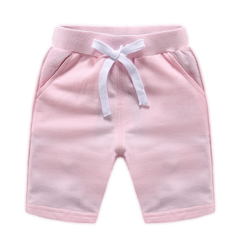 Baby Girls Summer Solid Colour Elastic Waist Cotton Shorts - Pink, White
