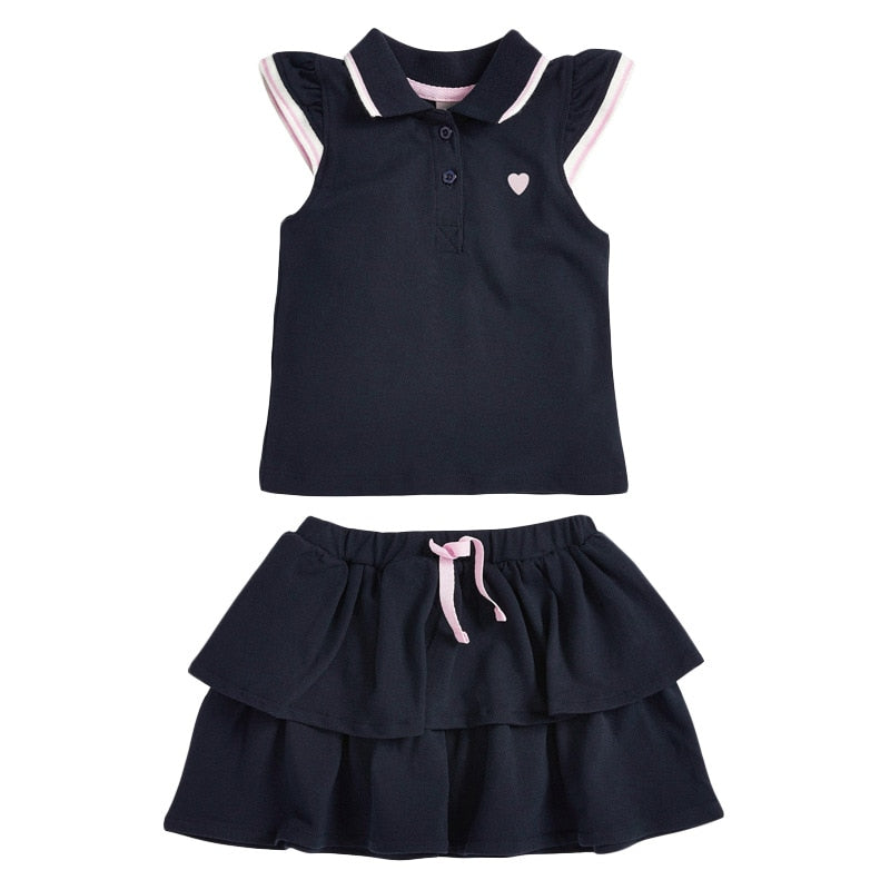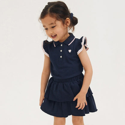Girls Cute Ruffle Sleeve Solid Cotton Set of Tank Top and Skirt - Navy Blue