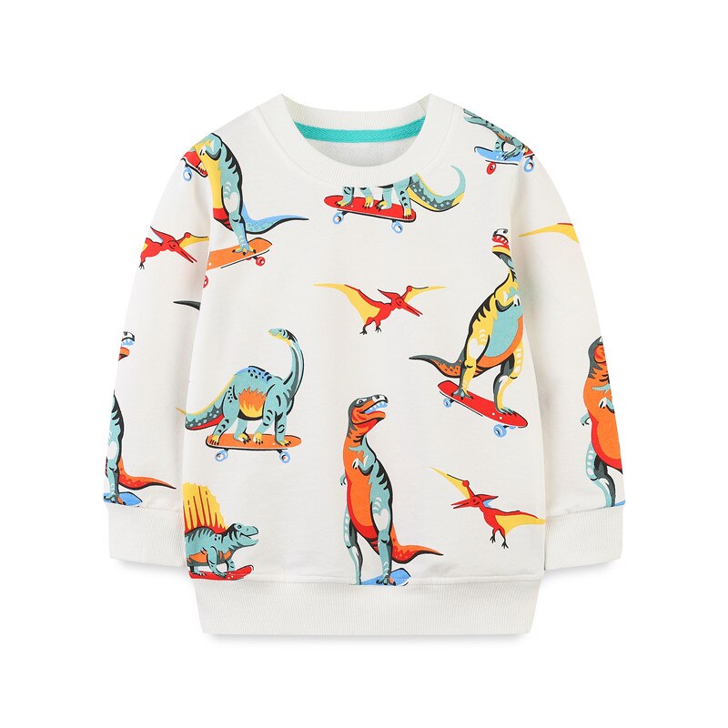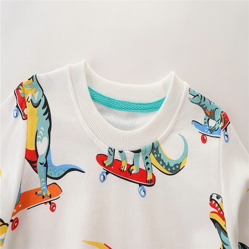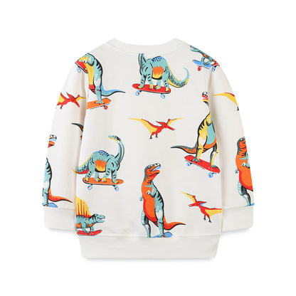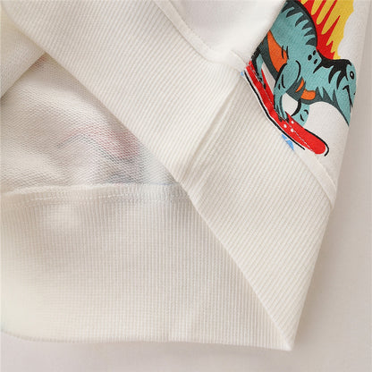 Kids Dinosaurs Print Long Sleeve Cotton Sweatshirt - White