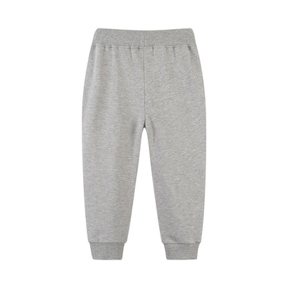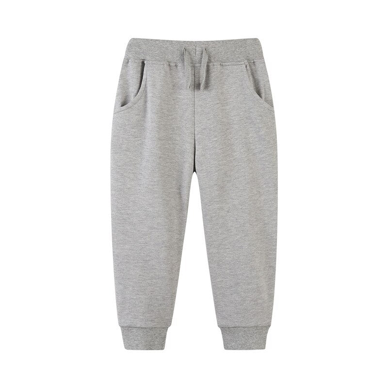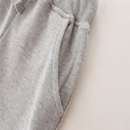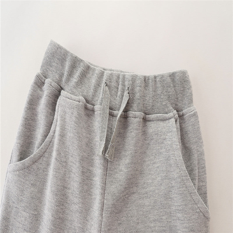 Girls Plain Colour Drawstring Cotton Sweatpants - Grey