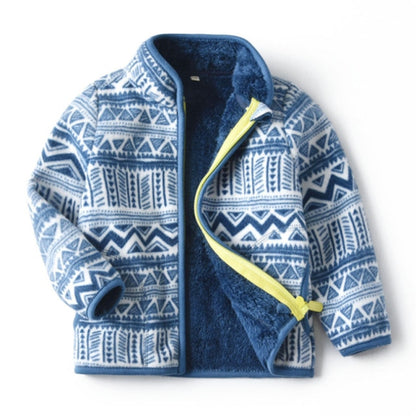 Kids Fleece Thicken Warm Long Sleeve Wool Jacket - Blue